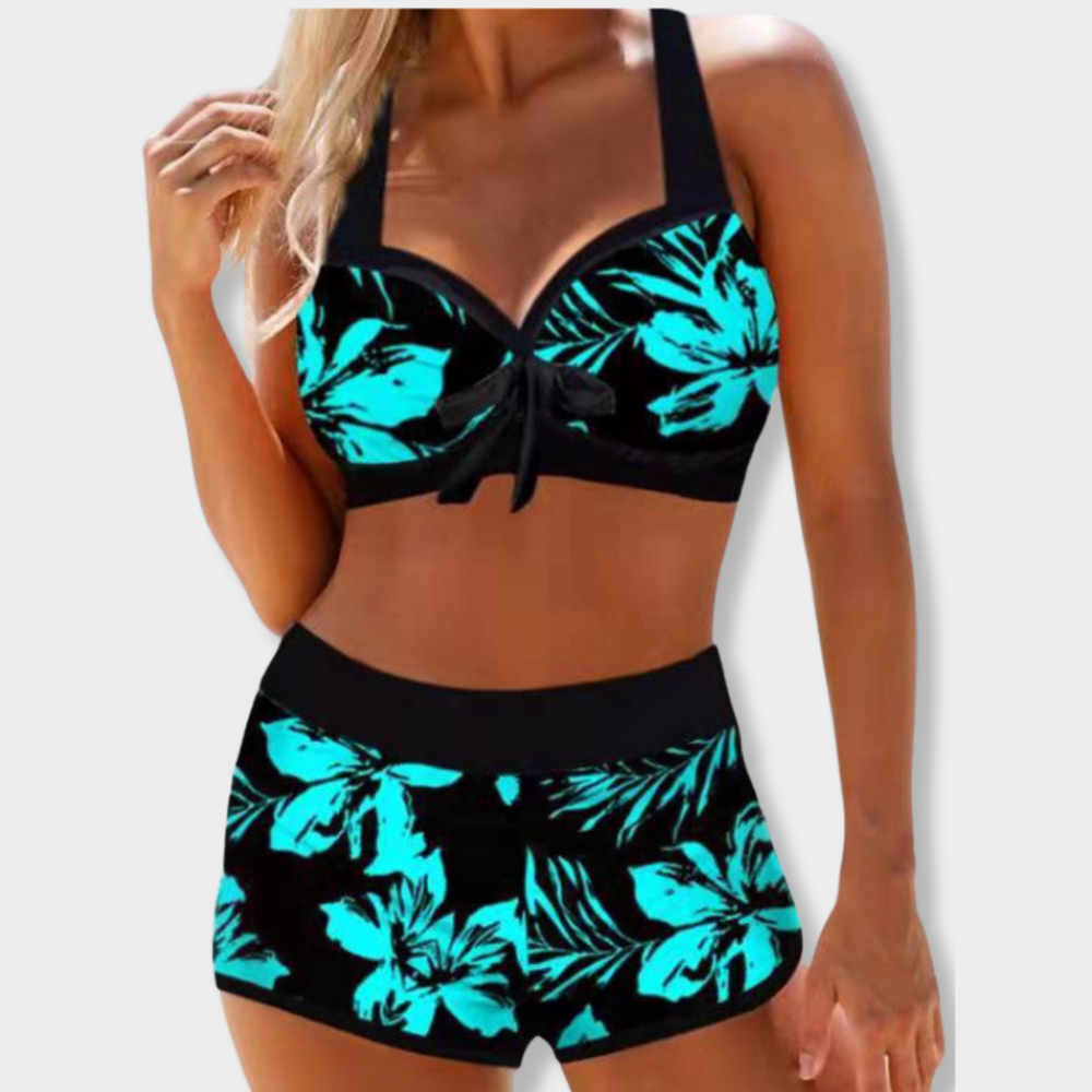 The Anna swimsuit combines comfort and style. With its high waist, it offers a flattering silhouette and support. The delicate floral pattern gives it a charming and feminine look, perfect for the beach or pool.